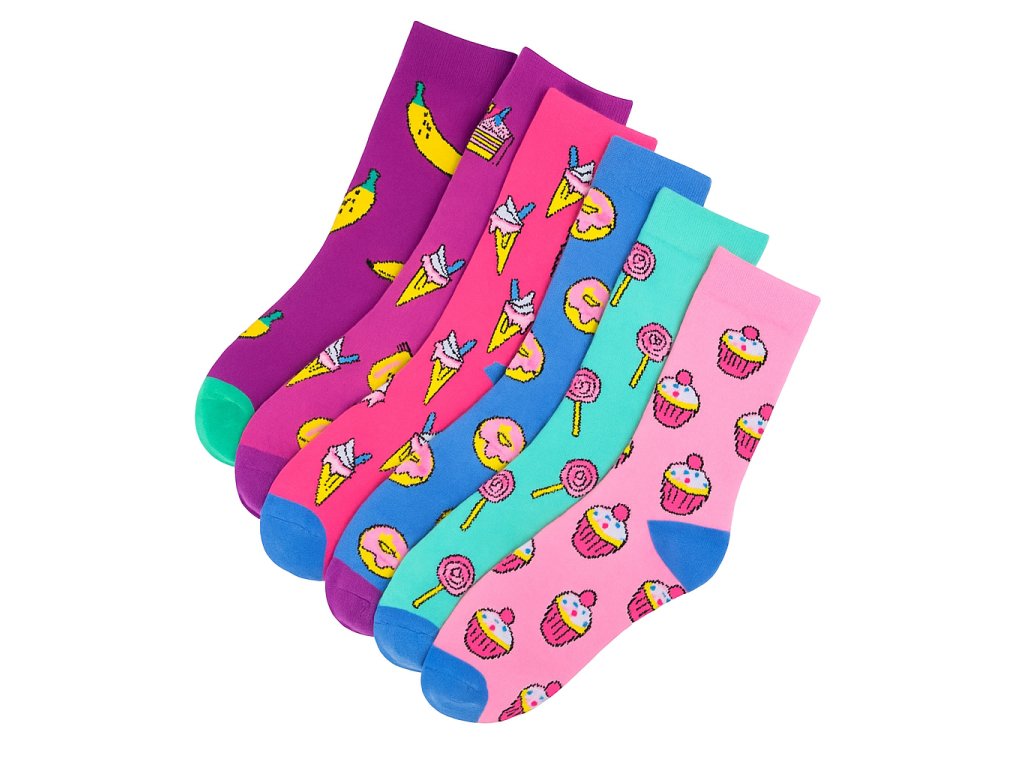 Ponožky s motivem sladkostí viz foto. One size. 5 párů.
