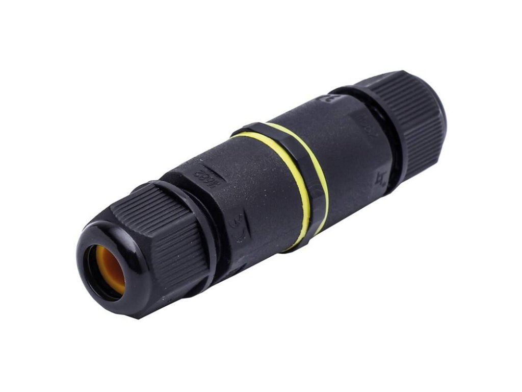 Kabelová spojka pro spojení 2-3 žilových kabelů, propojení pomocí zacvakávací spojky. Voděodolnost IP68. Délka spojky 75 mm.